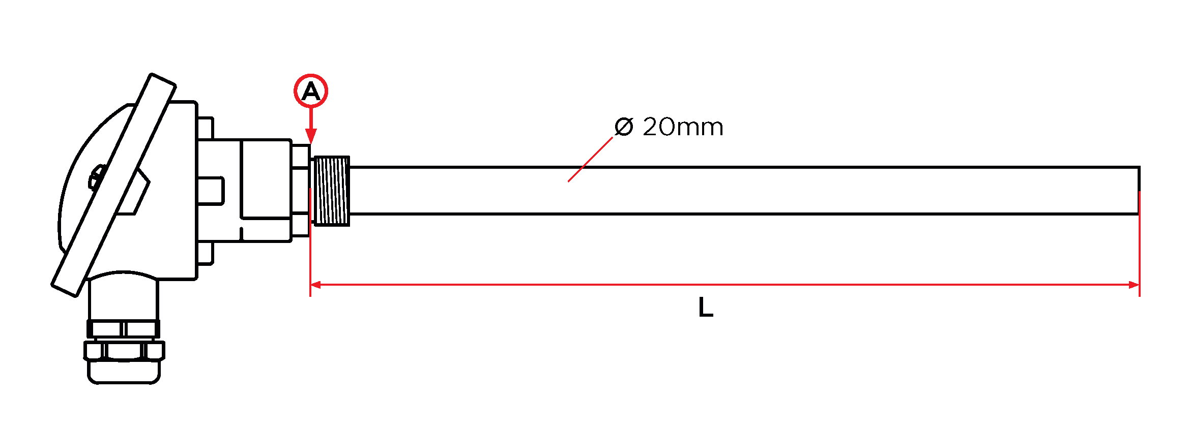 Lunghezza massimo dello stelo isolato  L = 1.950mm dal punto “A” *