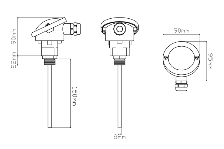 Output 4–20mA: 4mA@ -40°C, 20mA@ +150°C